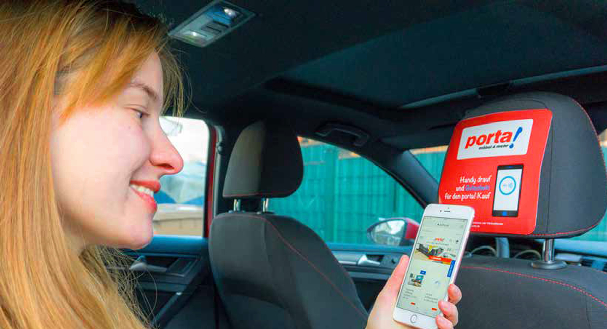 Kopfstützen-Taxiwerbung schafft neue Leads und kann ab 2018 auch technische Schnittstellen via NFC abbilden.