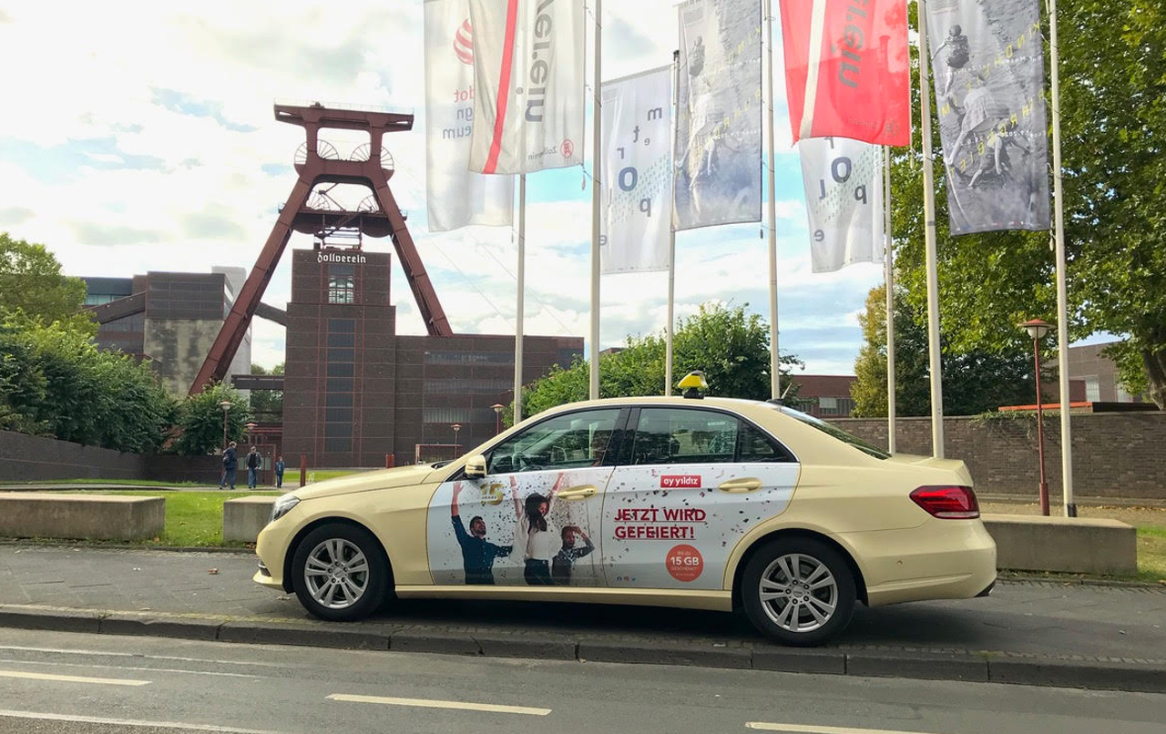 Das Ruhrgebiet besitzt nicht die eine Innenstadt, sondern viele urbane Knotenpunkte. Taxiwerbung nutzt das zu ihrem Vorteil: Sie erreicht unterschiedliche Zielgruppen in vielen Städten gleichzeitig – mit einer Kampagne. Die Euro Verkehrs-Werbung GmbH kümmert sich dabei um Planung, Gestaltung, Produktion und Qualitätskontrolle – zuverlässig, flexibel und schon ab 149 € pro Taxi und Monat.